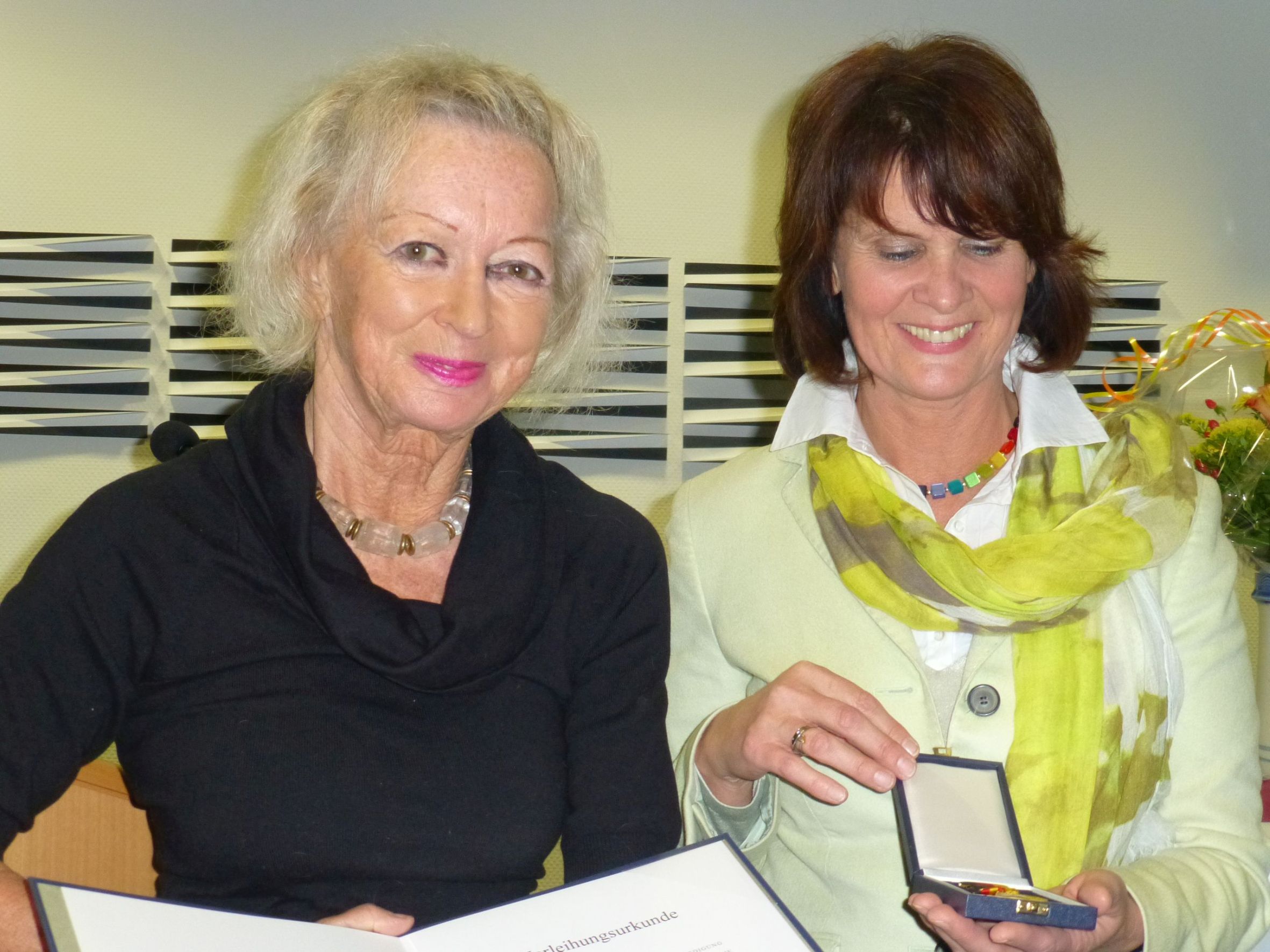 Christiane Schauder empfängt von Staatsministerin Vera Reiß die Verdienstmedaille des Landes Rheinland-Pfalz